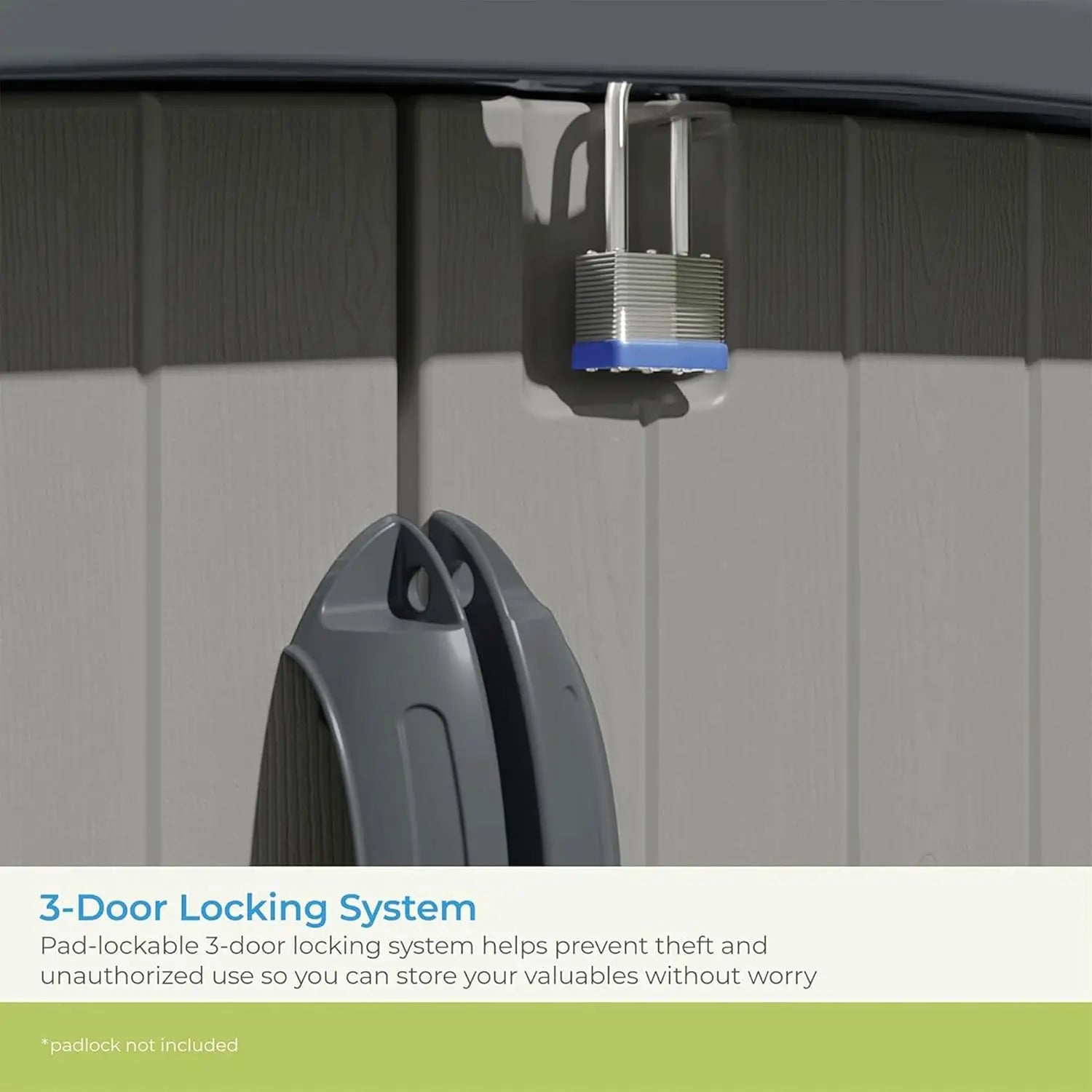 - Pad-lockable 3-door locking system helps prevent theft and unauthorized use (padlock not included).