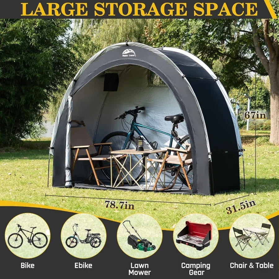 Constructed from durable 210D fabric with waterproof performance, it shields your bicycle from rain, dust, and road grime. The space-efficient shelter makes a great storage solution during trips, camping, or roadside stops, ensuring your gear stays dry and ready for the next ride.