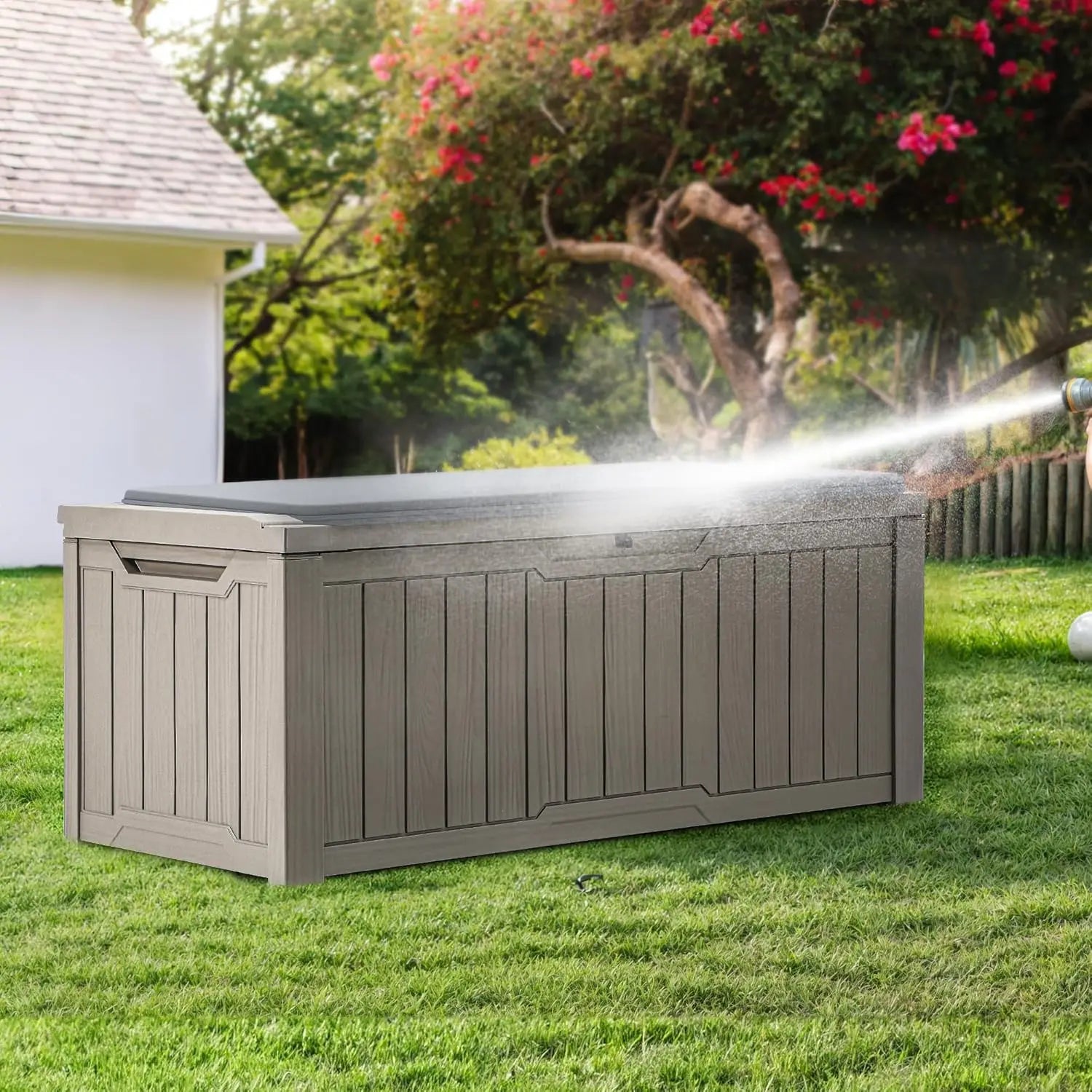 - Durable, low maintenance: Weather-resistant resin protects your contents from moisture and sun; fade-resistant exterior cleans with a quick wipe.
