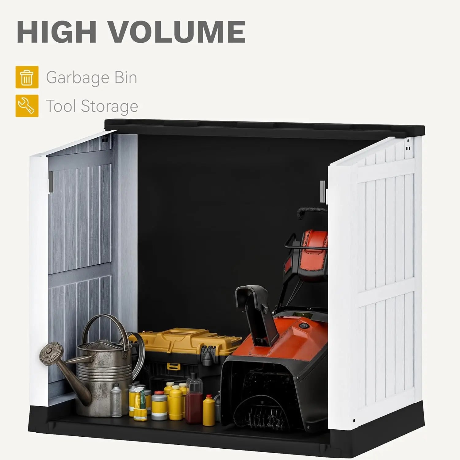 Resin Plastic Tool Storage Shed With Lid Lockable Door is your versatile outdoor storage solution, offering a compact 36 cu ft cabinet that can be used as a garden shed, garbage bin shelter, tool house, or even a cozy pet nook — all in a sleek light gray with a wood-grain look.